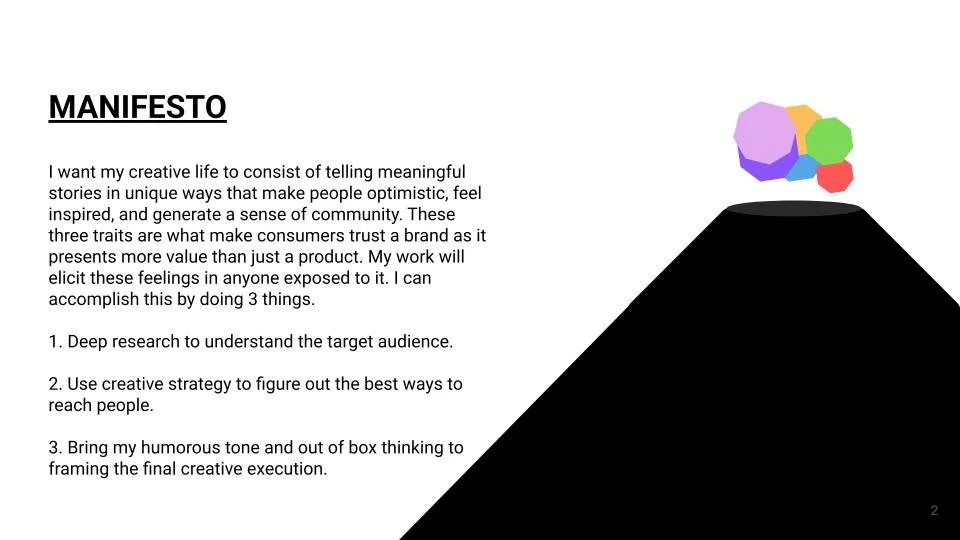 The Strategy: I realized that great storytelling isn't just about what you make, but the "Rules" you live by. I developed a 30-slide framework at the University of Oregon that analyzed the cultural weight of brands like Nike and Spotify to define my own point of view as a strategist.